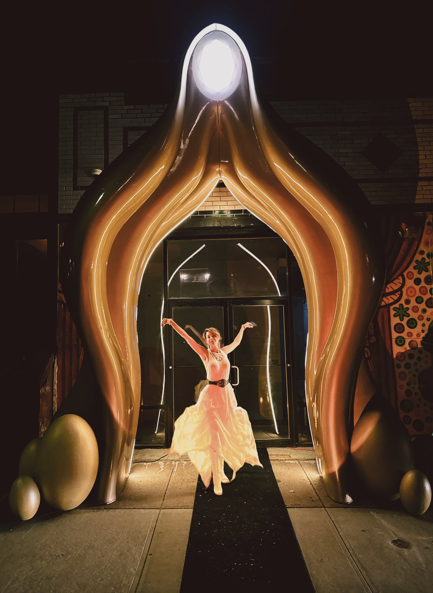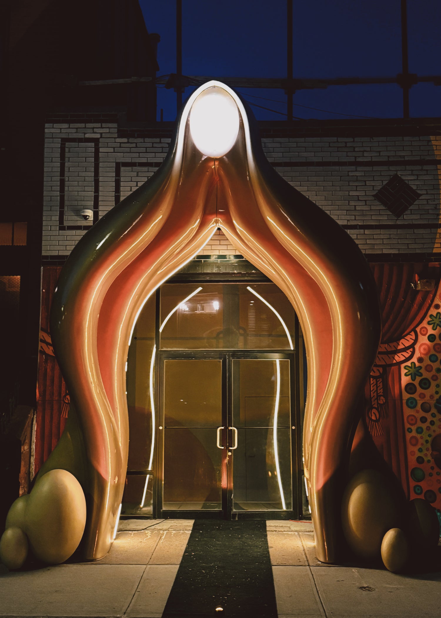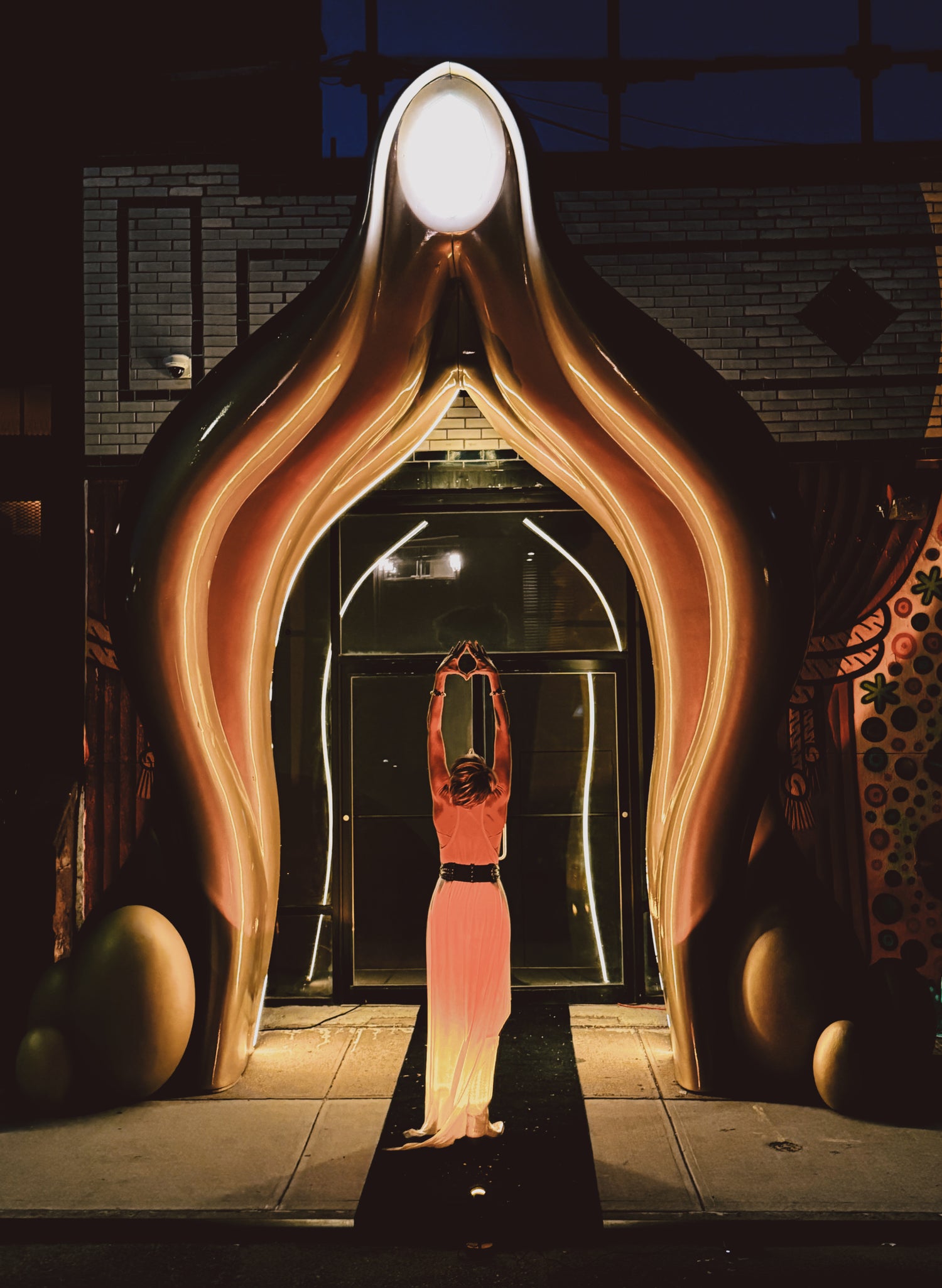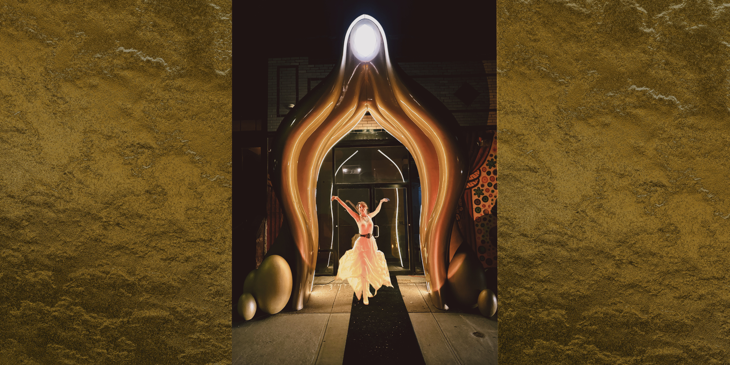 In an era of synthetic identities and cultural forgetting, The Mother Key arrives as sacred interruption and communal mirror. It speaks not to gender, but to genesis; not to anatomy, but to agency. Participants pass beneath a gleaming sculptural clitoris—reclaimed as a glyph of sovereign pleasure—and through a corridor of golden eggs embodying initiation, memory, and future codes of becoming.